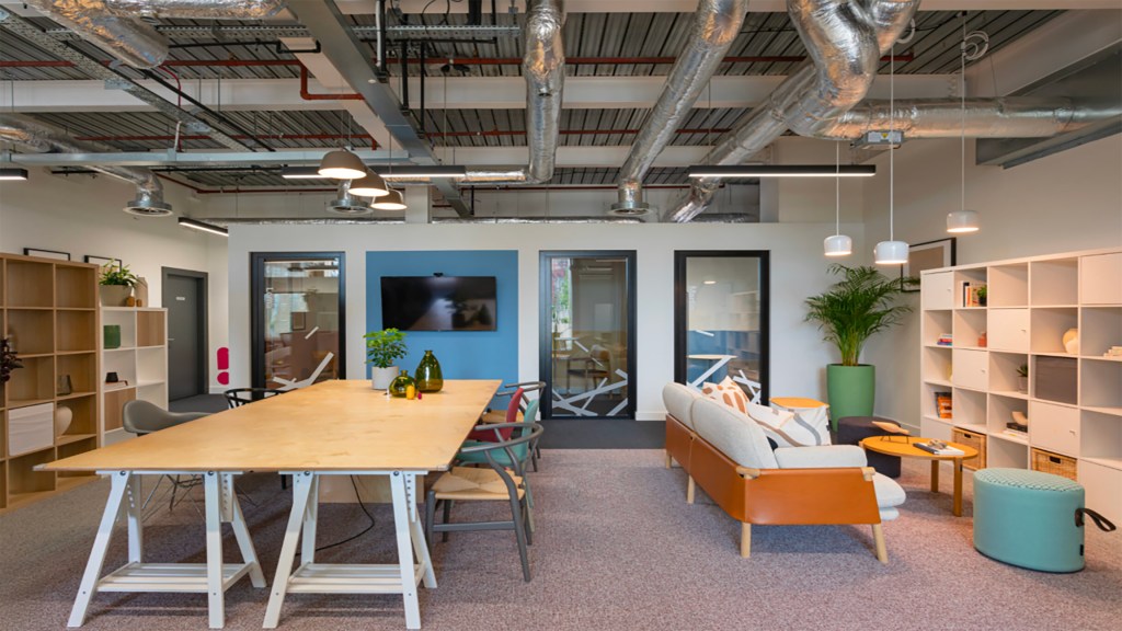 Open-office spaces are large, open areas with few or no walls or physical barriers, featuring scattered workstations and shared spaces like break rooms and meeting areas. (Some open offices use hot-desking, a method where workstations are unassigned and available on a first-come, first-served basis. We will be focusing on open-office spaces that offer dedicated desks alongside shared spaces for flexibility and collaboration.)